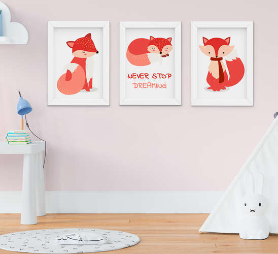 Kit Quadro Infantil Bebê Raposas 3 Peças