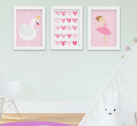 Quadro Decorativo Infantil Menina Bailarina Cisne Kit 3 Peças