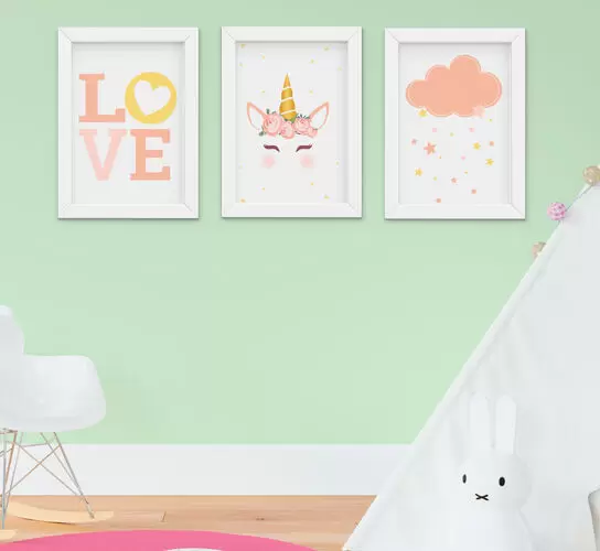 Quadro Infantil Menina Unicórnio Nuvem Love Kit 3 Peças